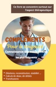 Comment augmenter rapidement vos connaissances sur les médicaments grâce à la DCI, informations sur les médicaments per os, préparation des médicaments injectables les plus fréquents, transfusions (sang, plaquettes, plasma), 10 pages avec exemples de calcul de doses, analyse de certaines erreurs médicamenteuses …