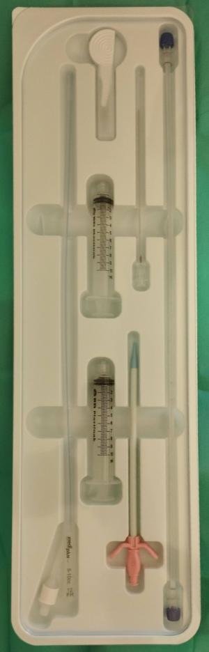 Le ballon de contre-pulsion en silicone de 40 ml, gonflé à l’hélium, est mis en place par voie fémorale dans l’aorte thoracique descendante.
