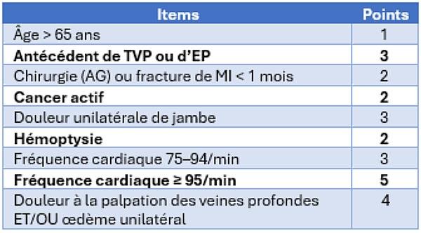 - EP probable : score ≥ 3 (ou ≥ 2 selon le seuil choisi).