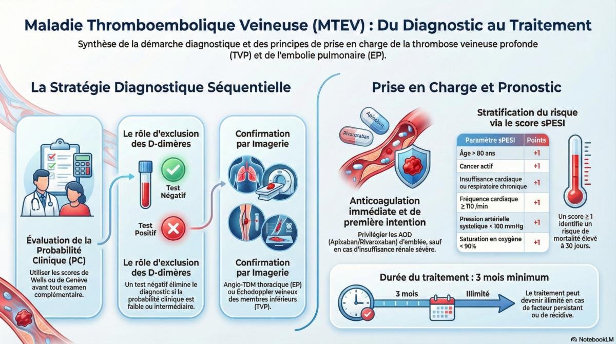 - EP probable → imagerie (angio‑TDM) sans attendre les D‑dimères.